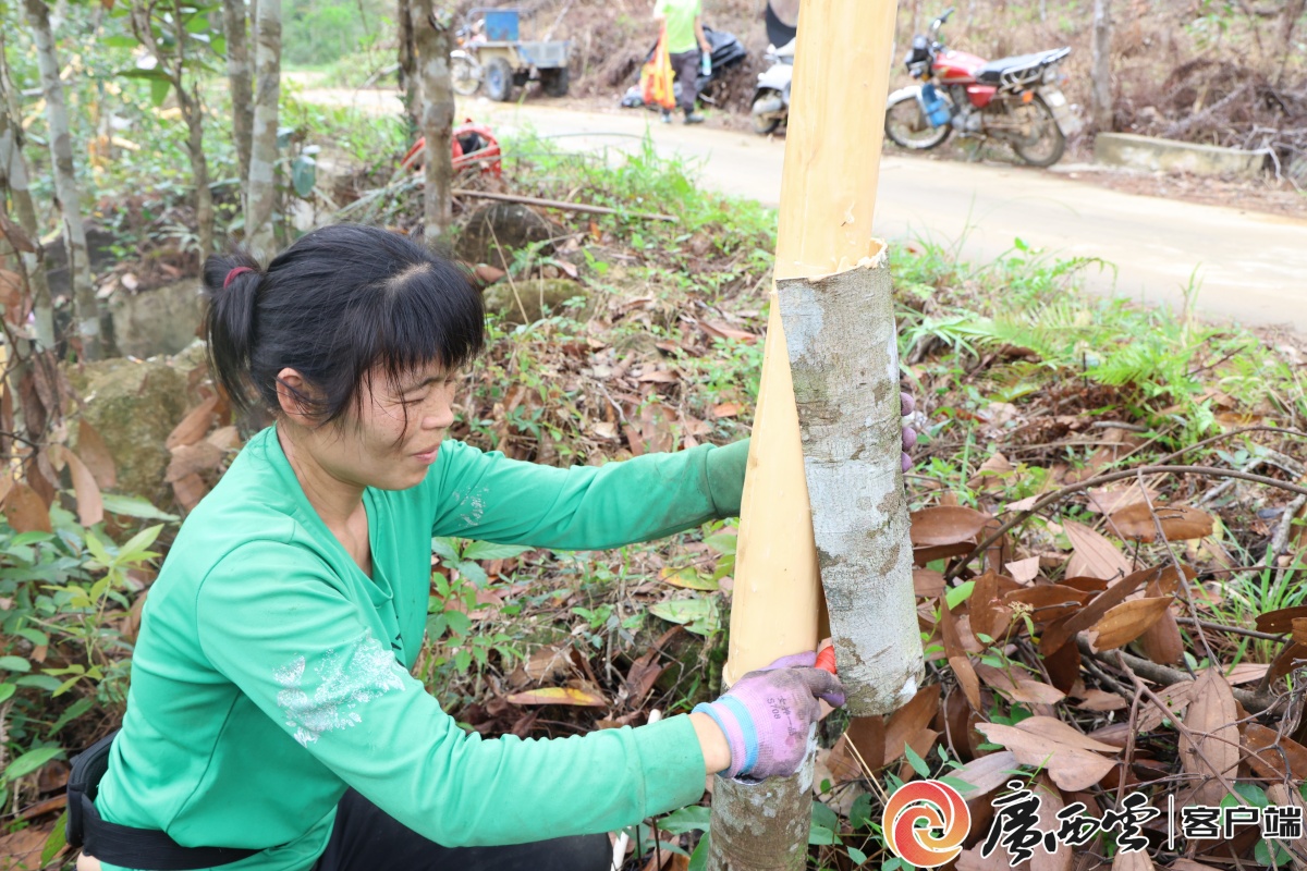 本地乡民沈杯海已在此剥肉桂数日,他泄漏,剥1斤肉桂可得1元工钱,这儿树干粗大健壮好剥,每日收入可达300余元。他家山林也种有肉桂,并与广西庚源香料有限责任公司签有收储协议,计划先在此赚钱,再回家剥肉桂卖给公司。